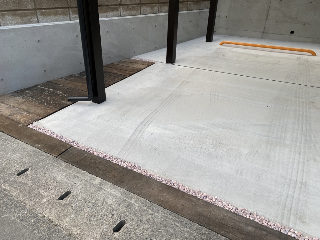 カーポートの床部分は、今までの枕木の床を取り除き、コンクリートの床にしました。