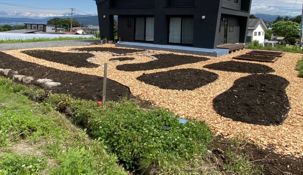 ウッドチップの小道・植栽スペース・木をうえてお庭をつくりました