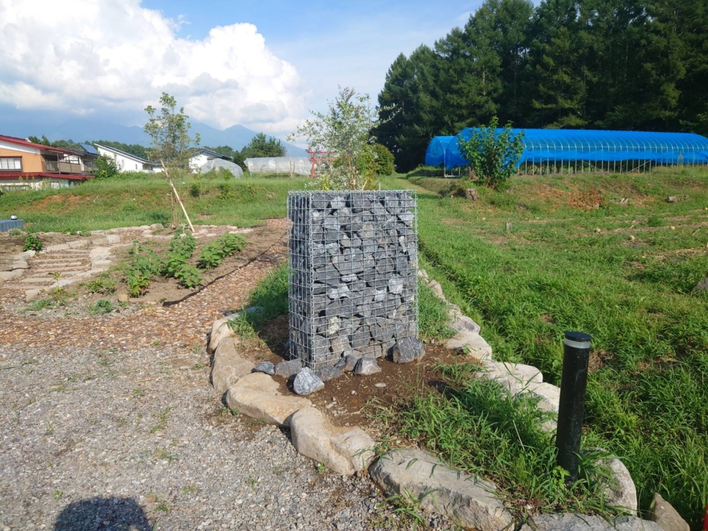 入り口には、ガビオンを設置しました