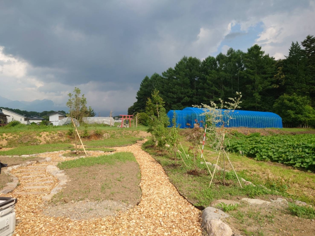 通路はウッドチップを敷きました。